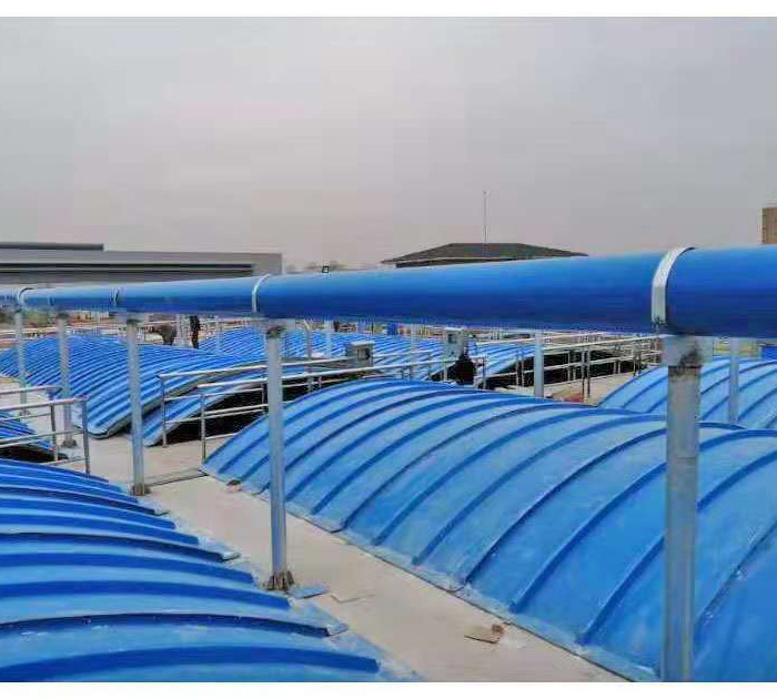 3、輕質高強、安裝方便:玻璃鋼蓋板比重僅為鋼制品的1/3至1/4,固化程度高,載荷負重大,強度高,適用于大跨度池體,同時蓋板可分為若干小塊,便于運輸、安裝。